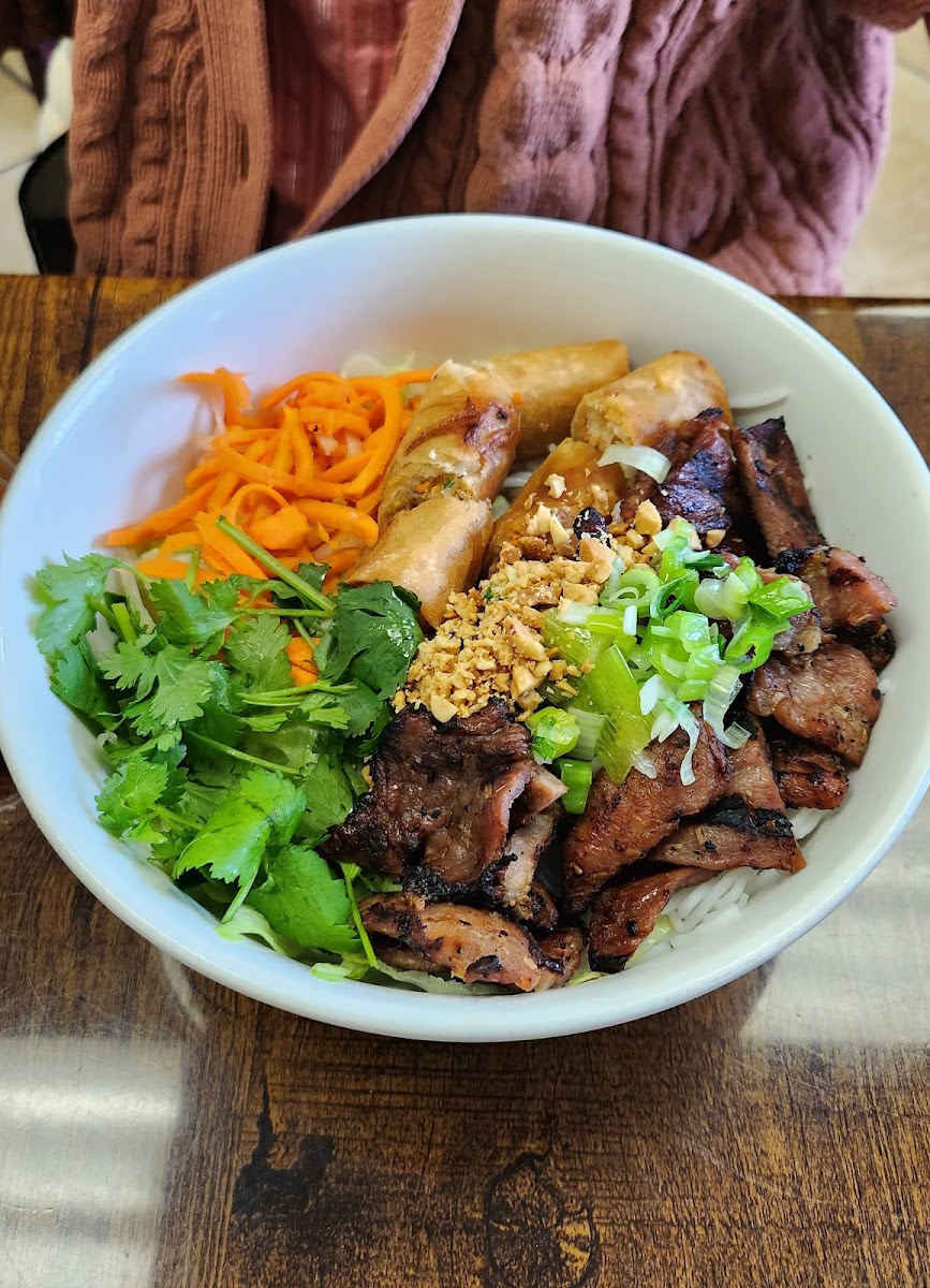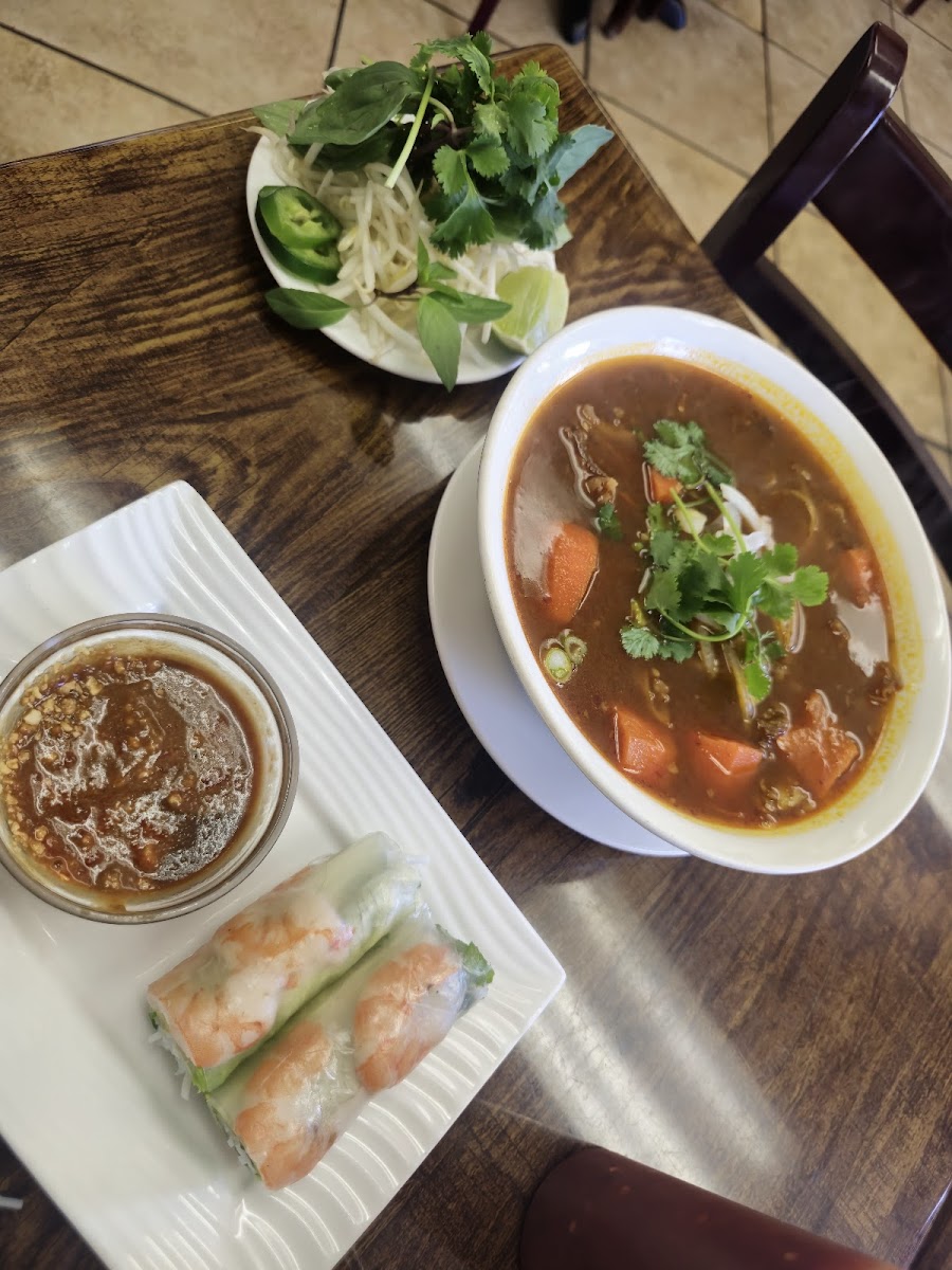A must-try at Rang Dong is their Pho, a fragrant, aromatic noodle soup that’s a staple of Vietnamese cuisine. The broth is rich and savory, infused with fresh herbs and spices that perfectly balance the flavors. It’s served with tender slices of beef and a generous portion of rice noodles that soak up all the deliciousness. Another standout is their Bánh Xèo-Vietnamese savory pancakes filled with shrimp, pork, and bean sprouts. Crispy on the outside and bursting with flavors on the inside, it’s a dish that encapsulates the essence of Vietnamese street food. For those with a sweeter tooth, their Che Ba Mau (a three-color dessert) is a refreshing and colorful end to your meal, made with coconut milk, mung beans, and sweet syrup.